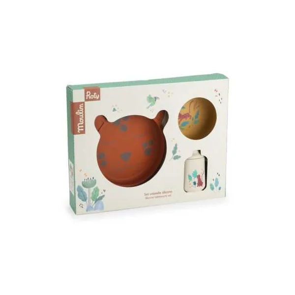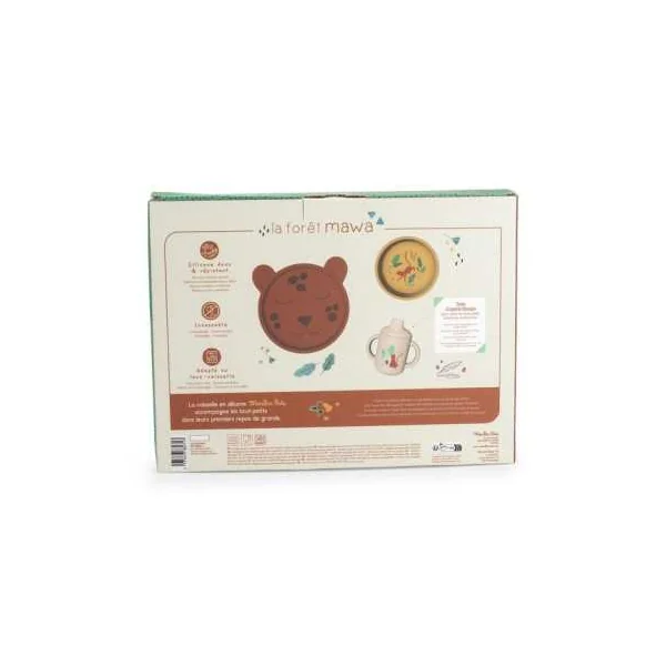 Découvrez le set de vaisselle en silicone de la collectionLa forêt Mawa de Moulin Roty, un coffret vaisselle tendre et ludique, parfait pour accompagner bébé dans l’étape importante de la diversification alimentaire.