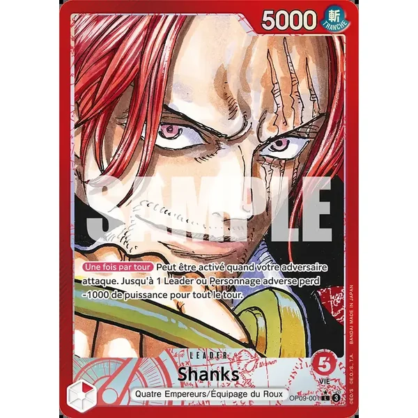 Découvrez Shanks (op09001), une carte Alternative de l’extension Les Nouveaux Empereurs. Idéale pour compléter votre collection, cette carte Alternative plaira autant aux collectionneurs qu’aux joueurs.