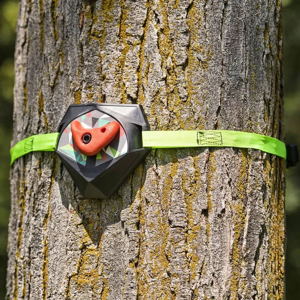 Les Treeclimbers sont des poignées innovantes pour grimper aux arbres. Ils se fixent facilement et rapidement aux arbres d’un diamètre d’environ 25-70 cm. Selon la taille de l’utilisateur, les poignées sont montées plus proches ou plus éloignées. La boîte contient 5 plaques en plastique robuste (18 x 15 x 5 cm) avec bande antidérapante et filetage intégré sur lesquelles sont fixées les sangles à cliquet (220 x 2,5 cm). Les 4 prises d’escalade différentes sont fixées sur les 4 plaques en plastique les plus hautes à l’aide des vis Allen et de la clé Allen fournis. La plaque inférieure en plastique n’est utilisée que comme marche, aucune poignée d’escalade n’étant fixée dessus. Les plaques en plastique ont une grande surface de contact structurée pour éviter de blesser l’arbre. Charge maximale supportée : 113 kg. Pour une personne uniquement. A utiliser sous la surveillance d’un adulte. Le montage doit être effectué par un adulte. Notice incluse. Utilisation en plein-air. Réservé à un usage privé. Diamètre minimum de l’arbre pour fixer les Treeclimbers : diamètre d’environ 25-70 cm soit environ 30 cm de circonférence. Développe la force musculaire et augmente la confiance en soi. En complément d´une Ninja Line (vendu séparément), permet une entrée en matière, permettant de rallonger le parcours !