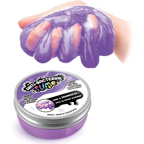 Une slime innovante antibactérienne qui élimine jusqu’à 99,9% des bactéries. Joue avec ta slime, désinfecte tes mains ET plus encore!