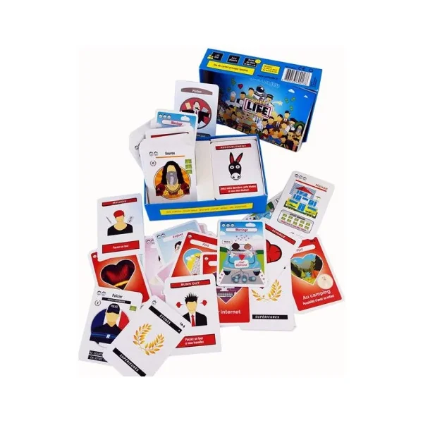 Découvrez le jeu Smile life, un jeu d’ambiance à partir de 12 ans qui consiste à faire et réussir sa vie. Jouez les bonnes cartes Amour, Carrière, Famille, pour cumuler des smiles et être le plus heureux des joueurs. Un jeu d’ambiance de cartes et de combinaisons qui tourne comme une horloge et quel que soit le public, tout le monde se prend au jeu en quelques minutes.