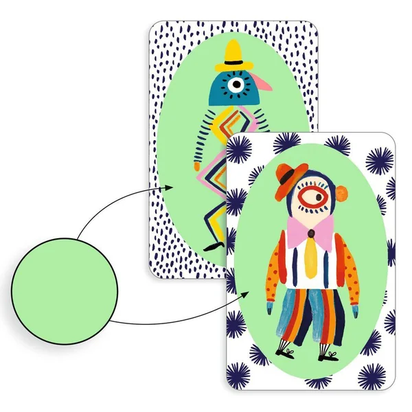 Un jeu d’association et de rapidité au rythme effréné ! Pour poser une carte, choisissez-en une qui partage avec la carte au centre de la table le même motif, la même couleur de fond ou le même personnage farfelu. Restez coentré : les tours s’ehaînent à toute vitesse ! Le premier joueur qui parvient à se débarrasser de toutes ses cartes remporte la partie.