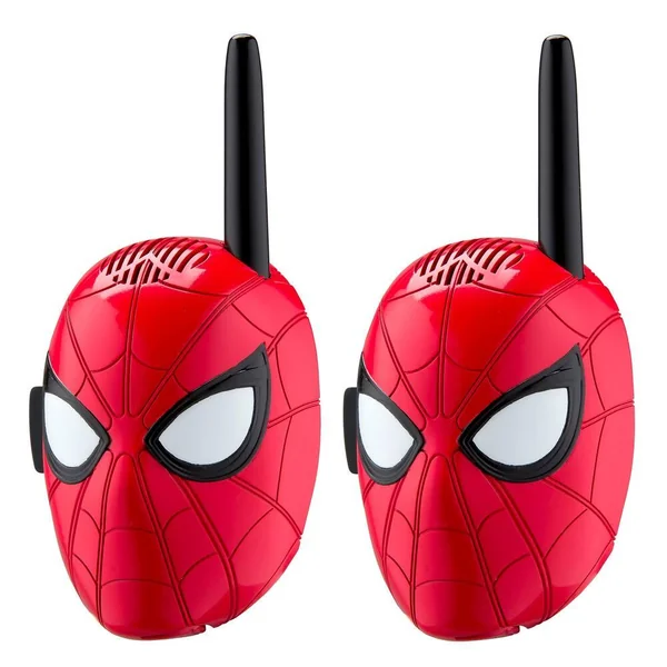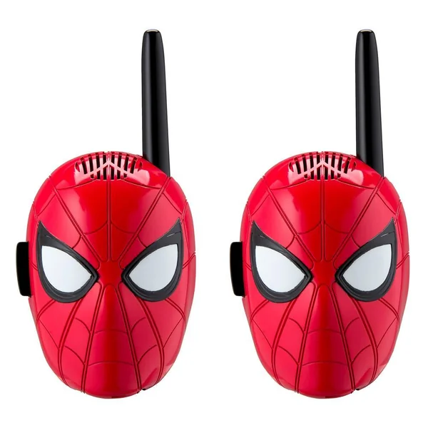 Talkie-walkie Spider-Man. Fonctionne jusqu’à 150 mètres. Effets lumineux et sonores. Bouton marche/arrêt. Microphone. Haut-parleur. Antenne rétractable. Matière plastique.