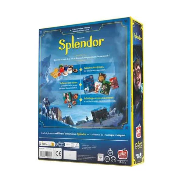 Dans Splendor, vous incarnez un riche marchand de la Renaissance. Vous utiliserez vos ressources pour acquérir des mines, des moyens de transport et des artisans qui vous permettront de transformer des pierres brutes en magnifiques bijoux.