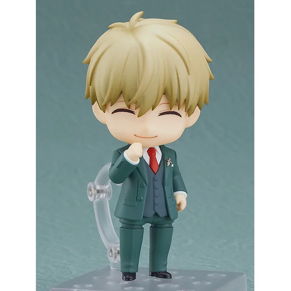 Cette figurine nendoroid Loid Forger est fournie avec trois plaques faciales dont un visage standard, un visage souriant et un visage troublé, apparemment choqué par un événement imprévu.