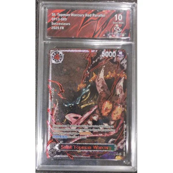 Découvrez cette carte gradée de la société Collect Aura ayant obtenu la note de 10. Représentant le One Piece Card Game St. Topman Warcury de l’extension en langue française, cette carte est idéale pour compléter votre collection. Chaque carte est authentifiée et expédiée avec soin par notre équipe.