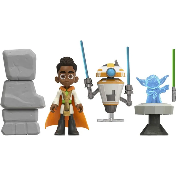 Un ensemble de jeu sonore et lumineux représentant un temple ou les petits Jedi Star Wars vont pouvoir s’entrainer. Nombreuses fonction. Inclus : 2 figurines articulées 10 cm et plusieurs accessoires. Inspiré du nouveau dessin animé préscolaire « Star Wars Young Jedi » de Disney +.