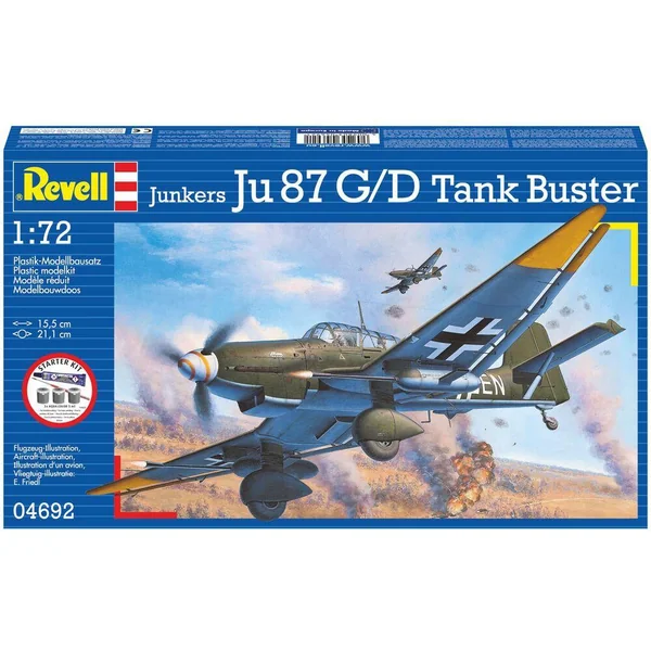 Maquette plastique à assembler, à coller et à peindre du Junkers Ju87 G/D Tank Buster. Échelle 1/72. 62 pièces détachées. Longueur de 15,5 cm.