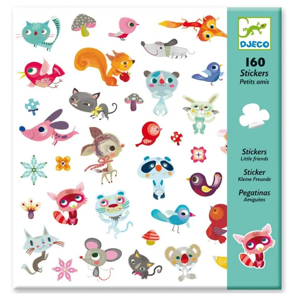 160 stickers répartis sur 4 feuilles 21,5 x 23 cm sur le thème des petits animaux.