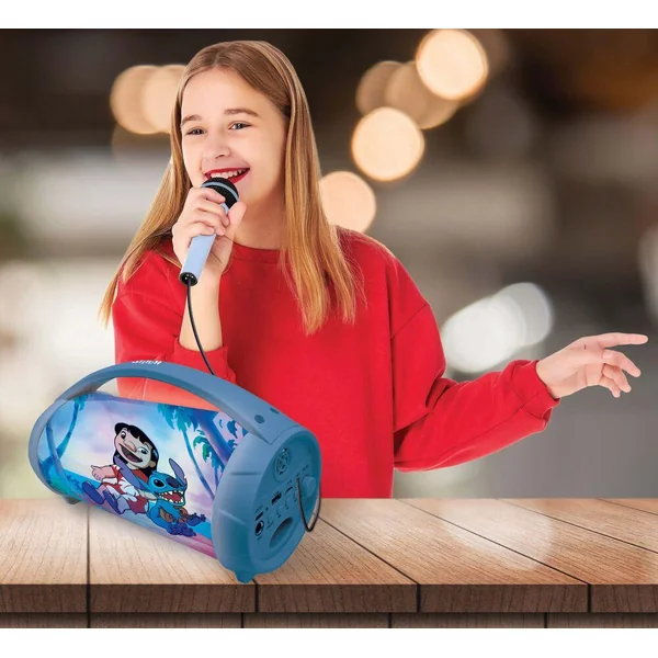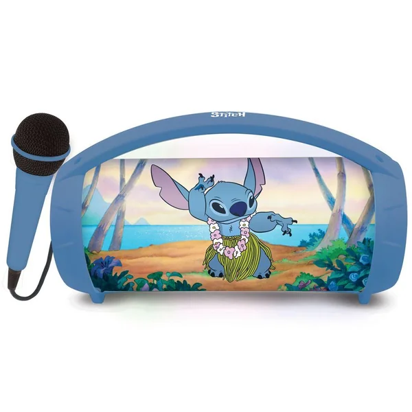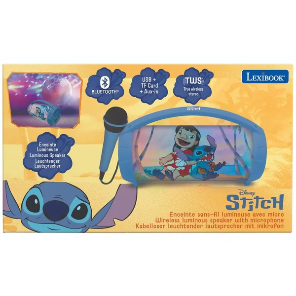 Magnifique enceinte bluetooth sans fil lumineuse avec micro stitch enceinte bluetooth 50 fonctionne sans fil avec tous les appareils equipes du bluetooth comme les smartphones ou les tablettes des effets lumineux multicolores incroyables grace à son micro inclus l enceinte fait aussi karaoke port carte micro sd/tf port usb pour brancher une cle usb et port aux in pour connecter un peripherique audio fonction tws synchronisez en 2 ensembles pour profiter d un son stereo batterie rechargeable 1200 mah pour plusieurs heures d utilisation en continu-