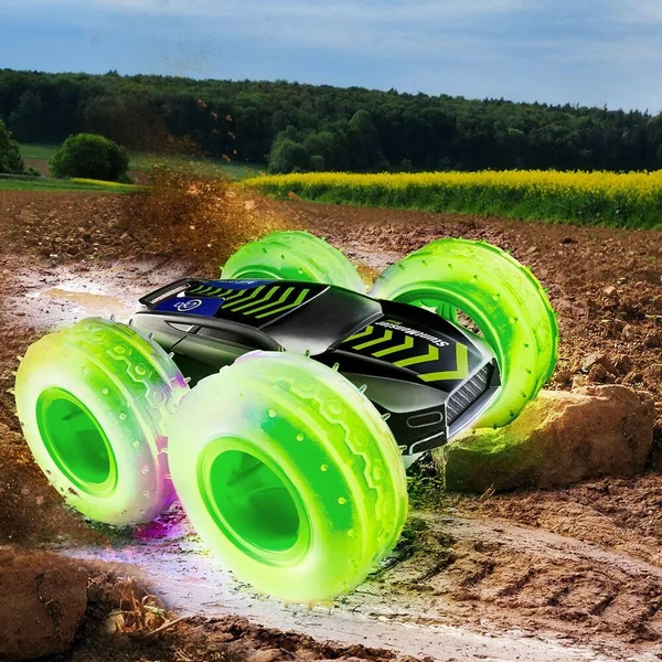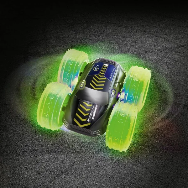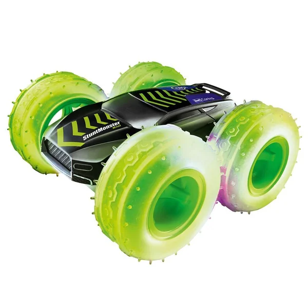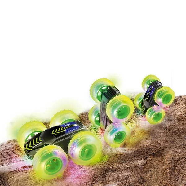 2,4 GHz pour jouer à plusieurs en intérieur et en extérieur. Tout terrain. Peut rouler sur 2 faces, faire des loopings et des 360°. Roues avec LED intégrées. Portée : 15 mètres environ. Vitesse maxi. : 15 km/h.