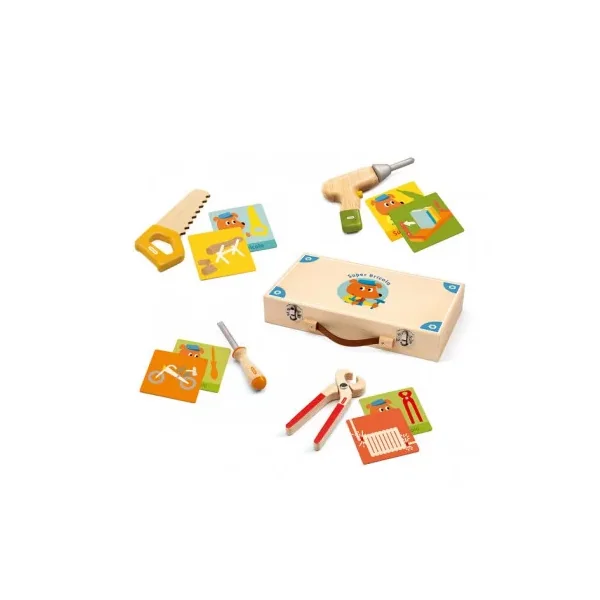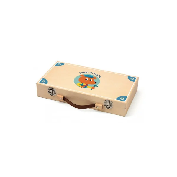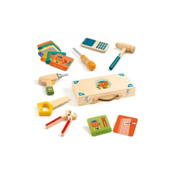 Découvrez le jouet Super bricolo de Djeco, une valise en bois de bricolage contenant des outils et des fiches éducatives pour les enfants à partir de 3 ans. Votre enfant va devenir un véritable petit bricoleur.
