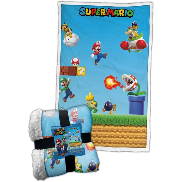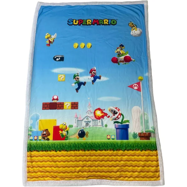 Avec ses dimensions généreuses de 150×100 cm, ce plaid réprésente une scène iconique des jeux Mario ! Fabriqué en matériau Sherpa de qualité premium, il offre une chaleur et un confort incomparables.