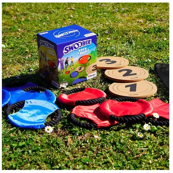 Deux équipes s’affrontent et lancent à tour de rôle leurs swoobees en visant les cibles au sol (à environ 3, 4, et 5 m) pour marquer 1, 2 ou 3 points.