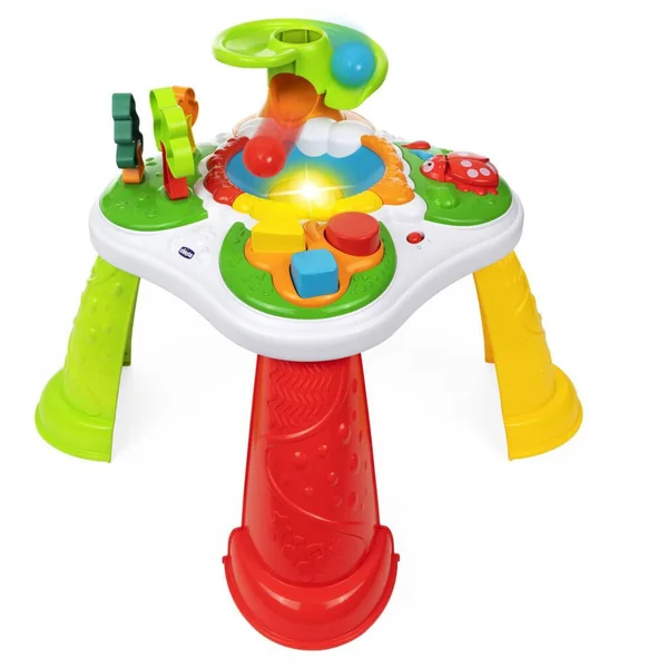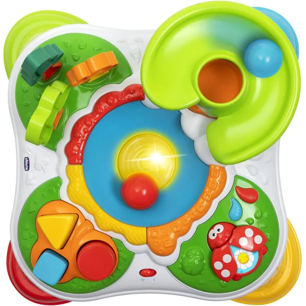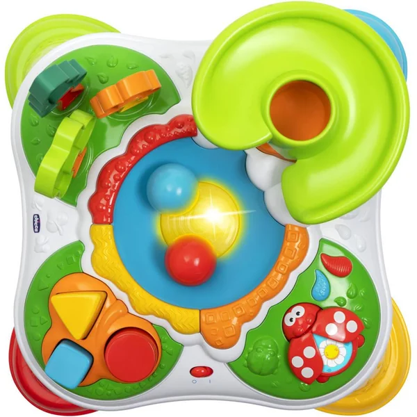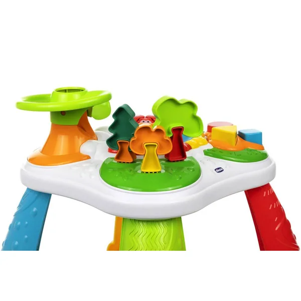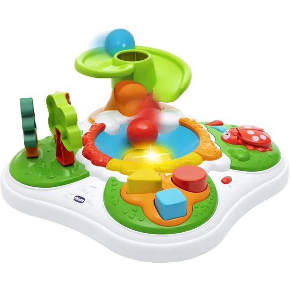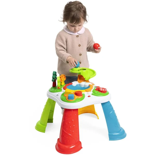 La table d’activités de la Forêt propose de nombreux jeux d’éveil pour les tout-petits ! Ils pourront regarder les balles tomber de l’arbre, s’amuser avec la boîte à formes et les arbres en puzzle et jouer avec la coccinelle. Les 4 pieds sont amovibles pour que bébé puisse jouer au sol ou en configuration table.