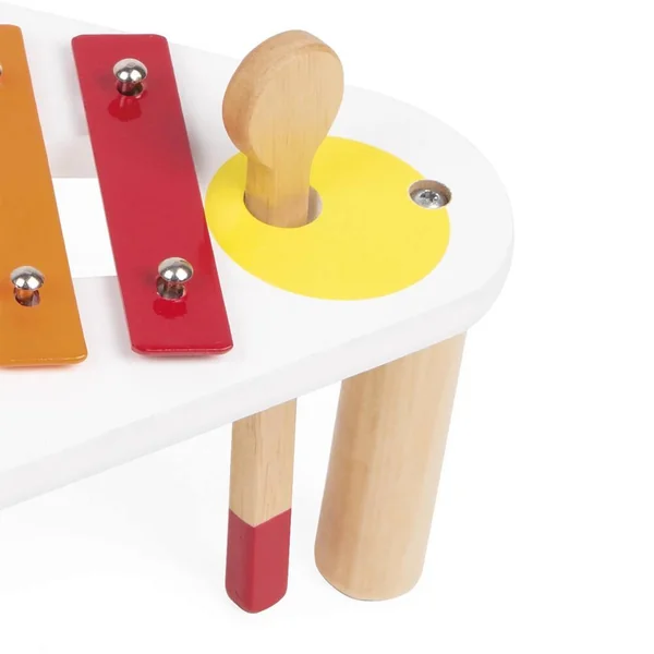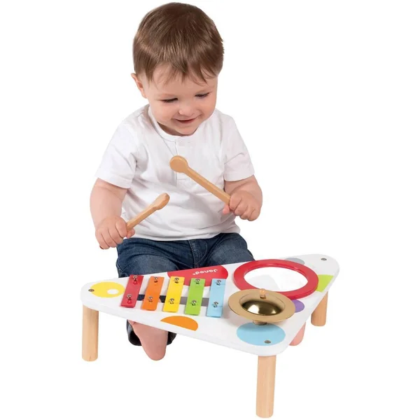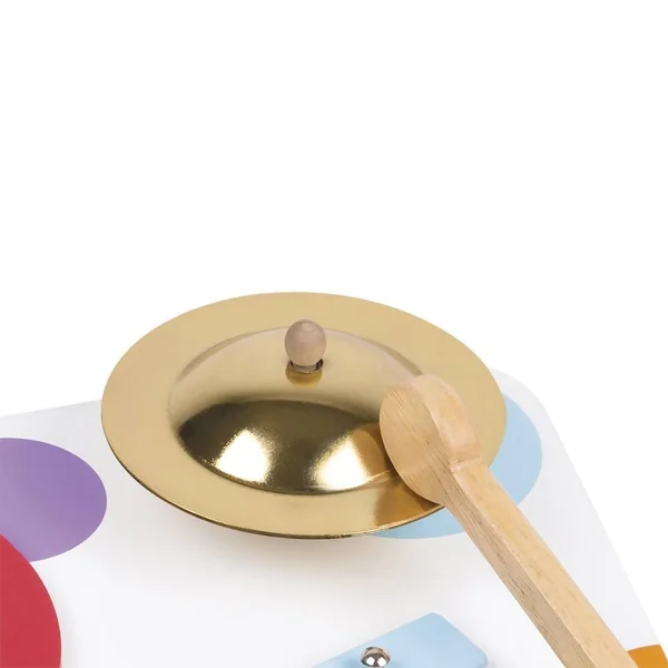 Table en bois composée d’un xylophone métal 5 tons, d’une cymbale et d’un tambour avec ses 2 baguettes. Confetti éveille tous les sens et permet aux plus jeunes musiciens de s’initier aux joies de l’improvisation musicale.