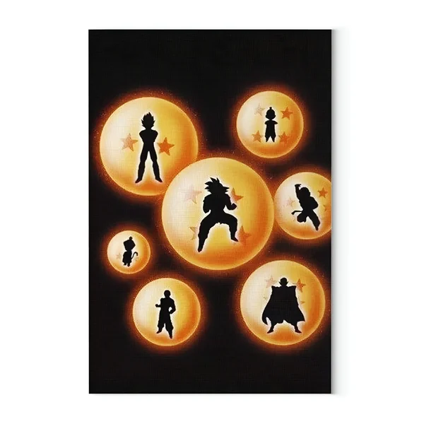 Le contraste entre le fond noir et la luminosité des boules crée un effet visuel saisissant, faisant ressortir la puissance de chaque personnage. L’ensemble évoque les moments d’action et d’émotion qui ont marqué l’histoire de Dragon Ball. C’est une pièce qui capte l’attention et suscite la conversation, invitant à partager sa passion pour cette saga.