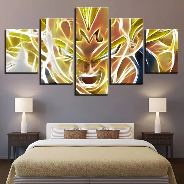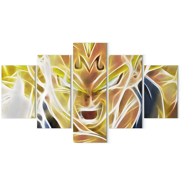 Le choix de ce type de présentation met en avant la puissance brute et la détermination de Vegeta. Les cinq panneaux agissent comme autant de fragments d’un instant charnière, celui où il cède à l’appel de la puissance obscure. Il devient un symbole de la lutte éternelle entre le bien et le mal. Ce format multi-panneaux ajoute une touche de modernité et d’originalité, en faisant de cette œuvre un élément de décoration contemporain et original.