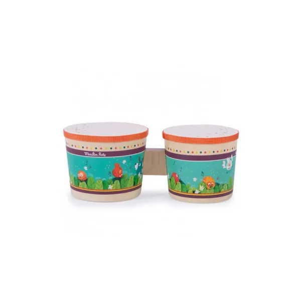 Découvrez letambour bongo de la collection Dans la jungle de Moulin Roty, un superbe instrument de musique pour les enfants à partir de 12 mois.