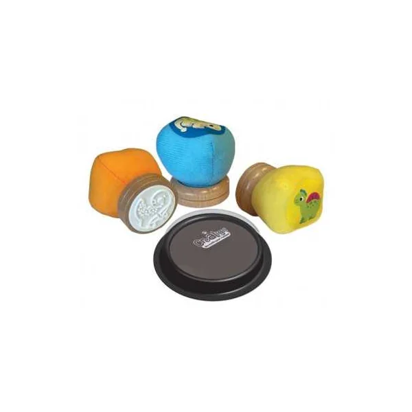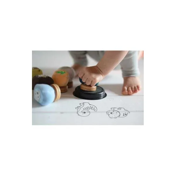 Grâce à leur forme boule en tissu velours, ils sont faciles à attraper, agréables à manipuler et invitent naturellement les enfants à créer. Chaque tampon représente un bébé dinosaure à imprimer à l’infini avec l’encreur géant inclus (encre lavable à l’eau).