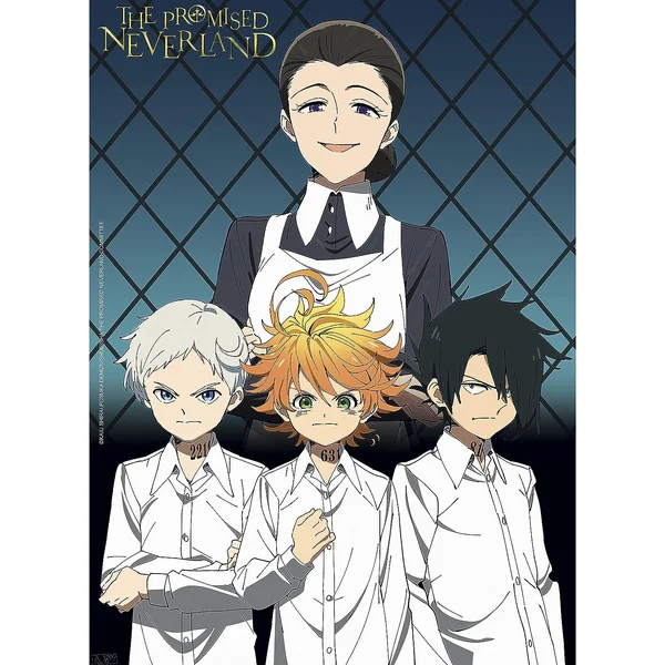Ce poster The Promised Neverland met en avant les moments les plus beaux et les plus dramatiques de nos héros avec Maman, Emma, Ray et Norman. L’orphelinat, avec son atmosphère mystérieuse et ses secrets sombres, est magnifiquement capturé dans cette illustration.