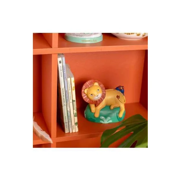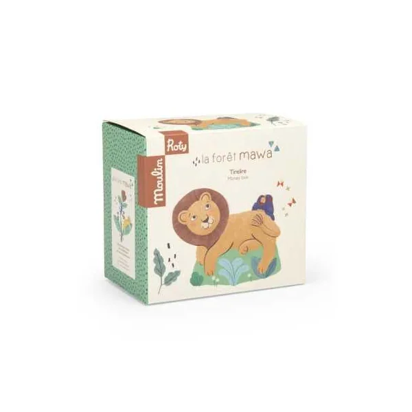 Découvrez la tirelire lion de la collection La forêt Mawa de Moulin Roty, une jolie tirelire en résine en forme de lion à offrir aux enfants.