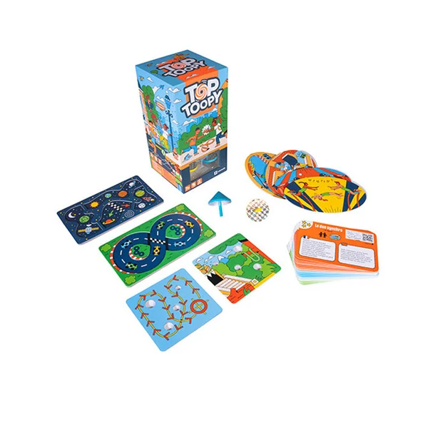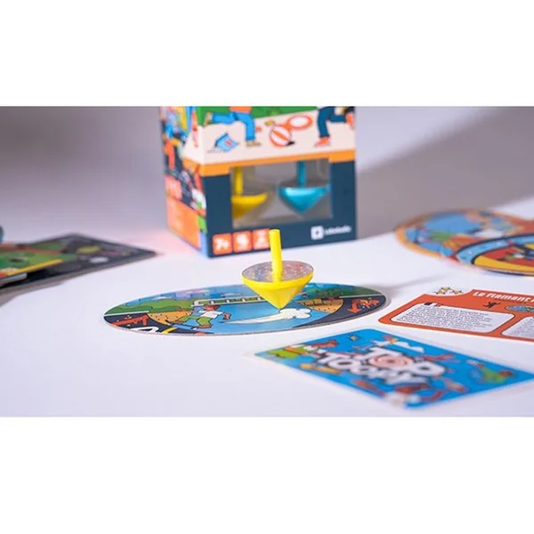 Top Toopy est un jeu d’adresse familial unique en son genre, mêlant spectacle, fun et acrobaties avec des toupies. Accessible à tous grâce à ses 3 niveaux de difficulté, il propose 40 défis à relever, de l1initiation aux figures les plus spectaculaires.