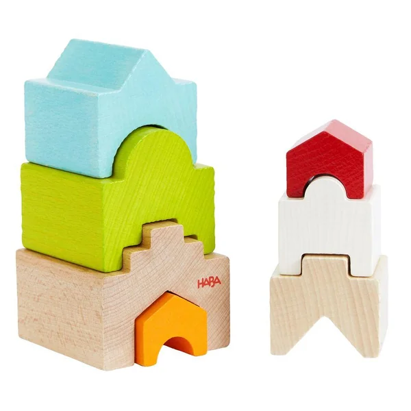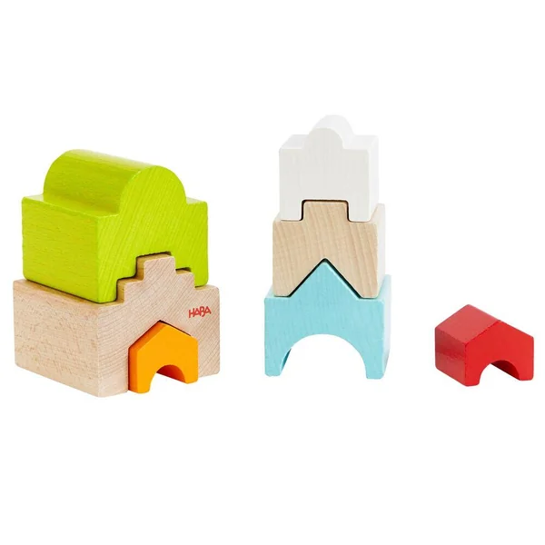 Les petits architectes peuvent s’essayer à leurs premiers chefs-d’œuvre. Ils peuvent choisir parmi des blocs empilables de différentes couleurs et tailles. Mais attention : tous les blocs ne s’emboîtent pas. Les découpes correctes doivent être identifiées et combinées correctement pour construire une tour sûre et stable. Favorise la motricité fine et la coordination œil main