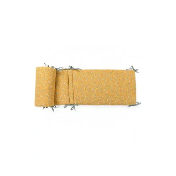Découvrez le tour de lit ocre de la collection Trois Petits Lapins de Moulin Roty, un tour de lit en tissu avec de jolis imprimés aux couleurs de le collection.