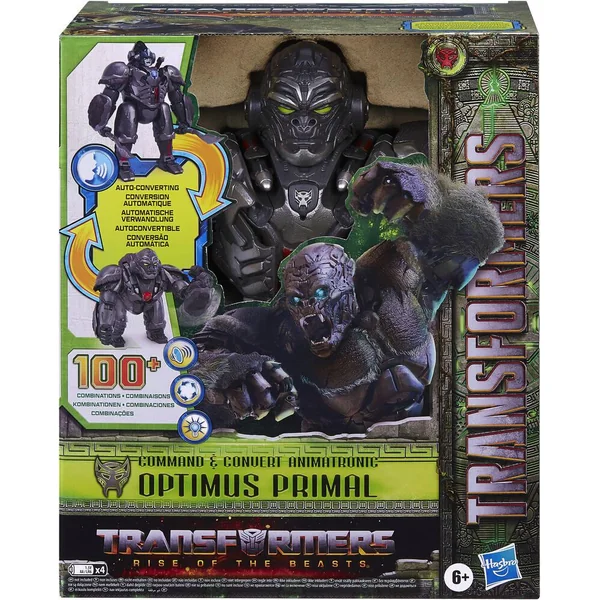 On peut foncer dans l’action en rugissant avec le jouet électronique Command & Convert Optimus Primal ! Optimus Primal se convertit au puissant mode gorille et protège la Terre contre toute menace en tant que chef des Maximals. Ce jouet électronique se convertit automatiquement du mode robot au mode gorille au son de la voix ! Plus de 100 combinaisons de sons et de mouvements activées par commande vocale ou en appuyant sur un bouton. Le robot gorille, pour filles et garçons, a 2 épées amovibles et une surface moulée réaliste. Ce jouet animatronique a une déco et des détails inspirés de la superproduction Transformers: Rise of the Beasts. Transformers et tous les personnages associés sont des marques de commerce de Hasbro. Hasbro et tous les termes associés sont des marques de commerce de Hasbro. Copyright 2023 Paramount Pictures Corporation.Tous droits réservés. Utilisé par Hasbro avec autorisation.