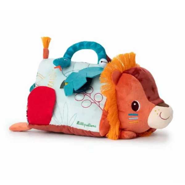 Pour amuser et éveiller les plus petits, dès 3 mois, notre lion câlin se présente sous forme de triangle d’activités en tissu avec un grand miroir ! Au programme : 6 activités disponibles de part et d’autre de la peluche, pour de longues heures de jeu et d’éveil sensoriel.