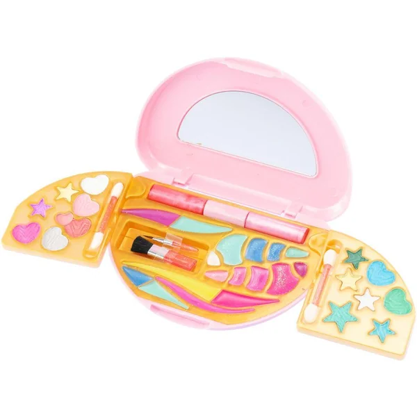 Découvrez le maquillage avec un précieux écrin en forme de demi-lune à la finition exclusive Pink It avec miroir et plateaux à ouverture latérale. Contient une large gamme de fards à paupières, fards à joues, gloss, applicateurs et un lipgloss en 2 couleurs avec double applicateur. Cosmétiques testés dans des laboratoires internationaux et conformes aux directives européennes pour les enfants.