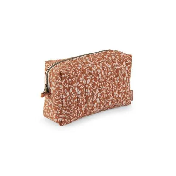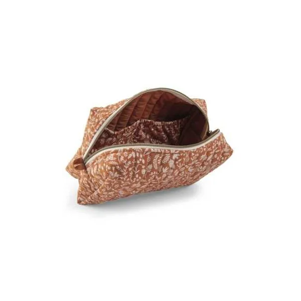 Trousse de toilette avec un imprimé feuillage avec une fermeture cuivre zippée, elle est une belle pièce qui complétera le nécessaire de bébé pour une toilette pratique et poétique.