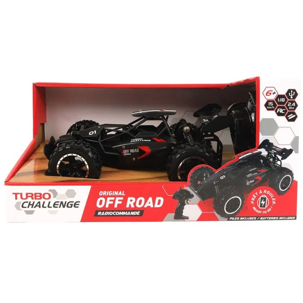 Découvrez l’Original Off Road de Turbo Challenge, un véhicule tout-terrain radiocommandé à l’échelle 1/18, conçu pour affronter les terrains les plus difficiles. Avec ses amortisseurs robustes, ce modèle de 23 cm peut atteindre une vitesse maximale de 15 km/h, offrant une expérience de conduite dynamique. Grâce à sa technologie 2.4Ghz, profitez d’une conduite précise et sans interférences. Parfait pour les jeunes aventuriers dès 6 ans.