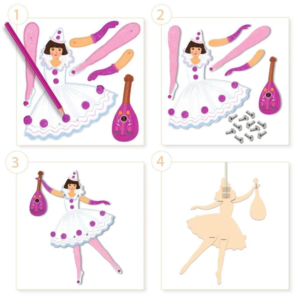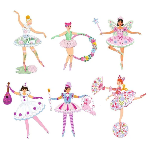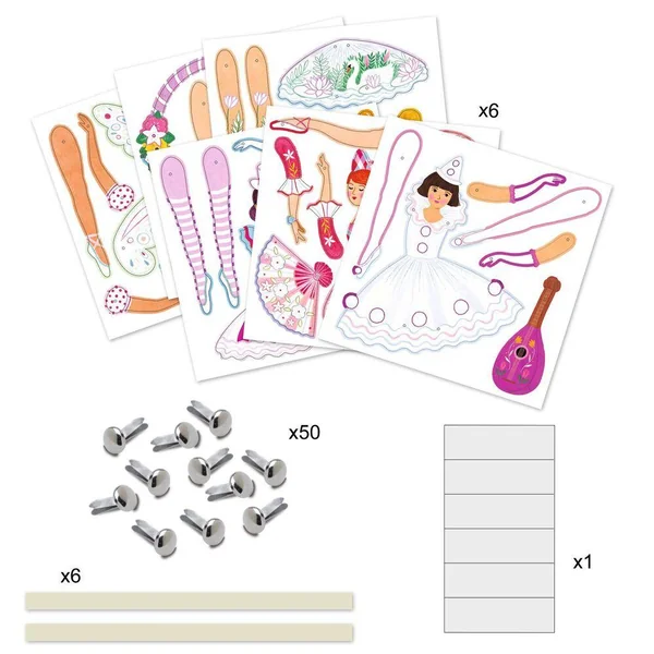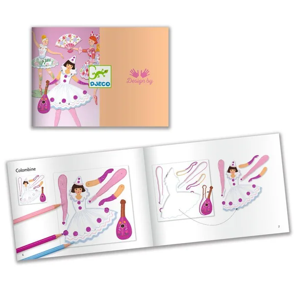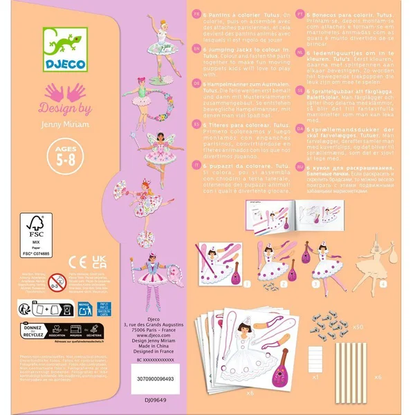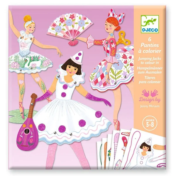 Une pochette de coloriage et d’assemblage pour réaliser 6 pantins. L’enfant colorie et détache les pièces cartonnées puis il les assemble pour créer de jolis pantins. Il ne reste plus qu’à les animer et faire danser toutes ces demoiselles en tutus!