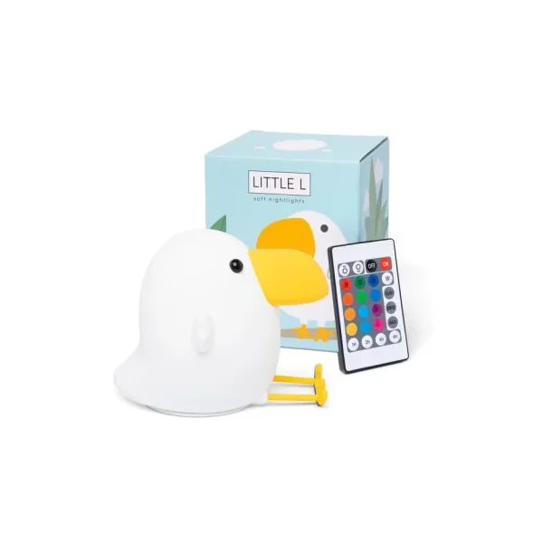 Découvrez la veilleuse toucan Oscar de LittLe L, une superbe veilleuse souple et douce qui s’illumine d’une belle lumière douce et qui change de couleur grâce à sa télécommande. En forme de toucan, vous allez craquer pour cette veilleuse en silicone.