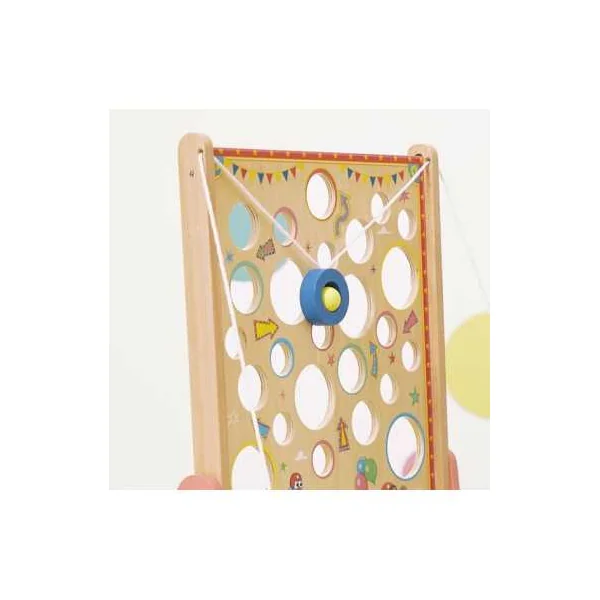Inspiré de l’univers festif de la fête foraine, ce jeu propose un défi captivant : guider une bille à travers une muraille à trous en la faisant progresser à l’aide de deux ficelles, tout en évitant les pièges. Équipé d’une planche de feutrine pour atténuer le bruit, ce jeu est livré avec 2 billes et garantit des parties dynamiques et stimulantes.