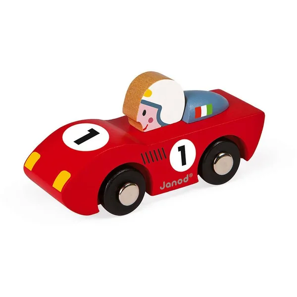 Collectionne les nombreux bolides en bois de la gamme : speed, formule 1, retromotor, roadster et racer. Compatibles avec l’univers de la gamme Story. Bois : merisier. La tête du pilote est équipée d’un double système de fixation (vis + colle) et les roues sont rivetés ce qui assure une sécurité optimale à ce jouet.