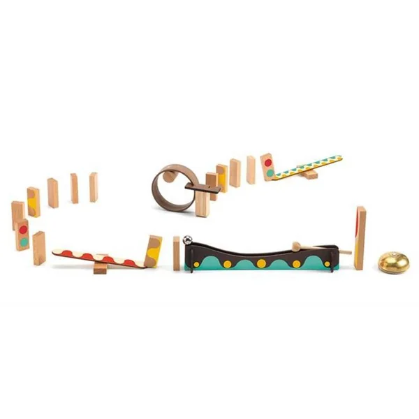 Ce jeu permet de comprendre l’ingéniosité d’une réaction en chaîne, de constater que la vitesse varie selon le poids d’un accessoire et d’évaluer les distances qui les séparent.